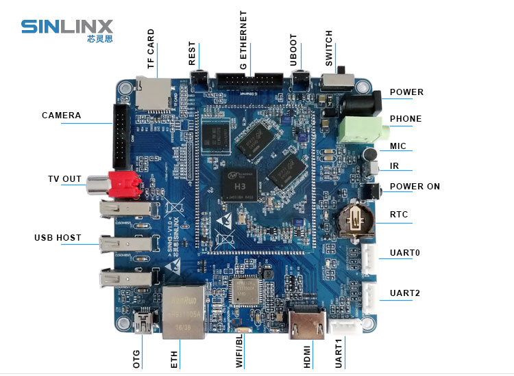 SIN-H3 ARM Cortex-A7 * 4、1GB DDR34GB EMMC、Supports H.265Android4.4、Armbian SDK BOARD SIN-H3 ARM Cortex-A7 * 4、1GB DDR34GB EMMC、Supports H.265Android4.4、Armbian CPU BOARD